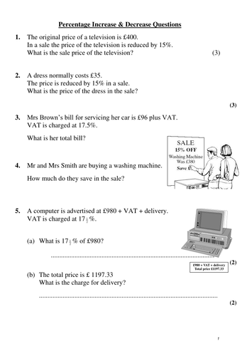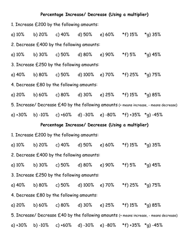 Percentage Increase And Decrease Worksheet In Pdf And Word Teachit Maths