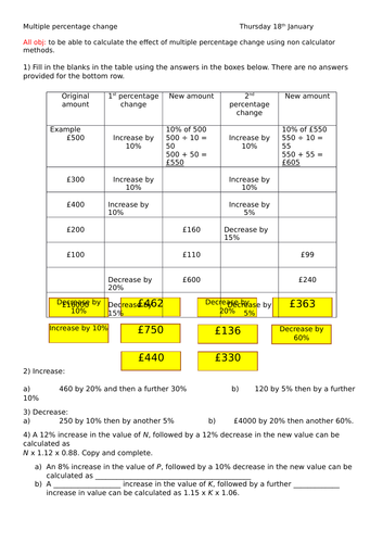 Get the percent of change worksheets with answers partner that we allow here and check out the link. Be aware the answers to the number search are given on the lesson powerpoint. All resources provided including lesson plan starter lesson worksheet plenary extension.